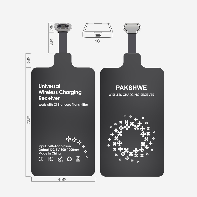 Type C Top-Center/Bottom-Center Side Qi Receiver 5W Wireless Charging for USB-C Phones – Model 1C