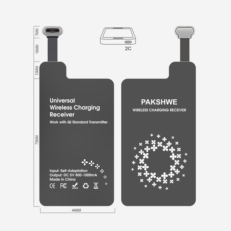 Type C Top-Left/Bottom-Right Side Qi Wireless Charging Receiver 5W for USB C Phones – Model 2C