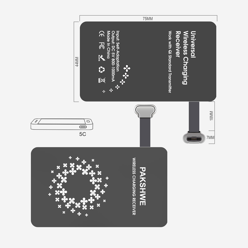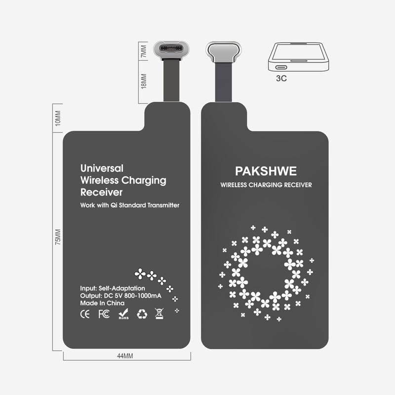 Type C Left-Bottom/Right-Top Side Qi Wireless Charger Receiver 5W for USB C Phones – Model 5C