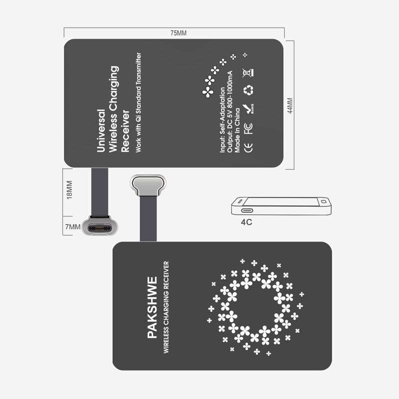 Type C Left-Top/Right-Bottom Side Qi Wireless Charger Receiver 5W for USB C Phones – Model 4C